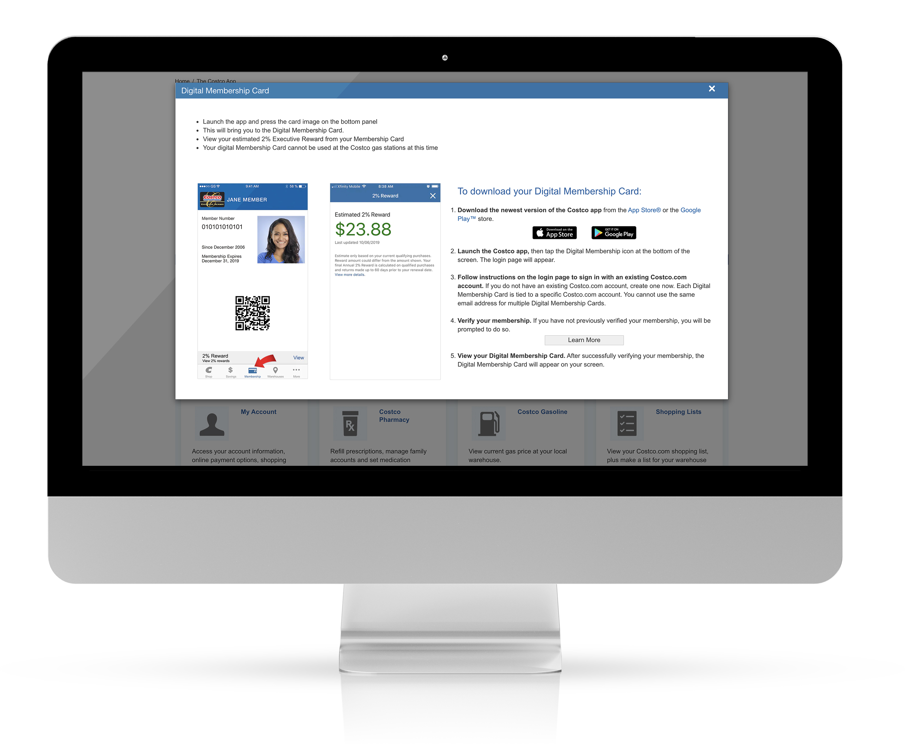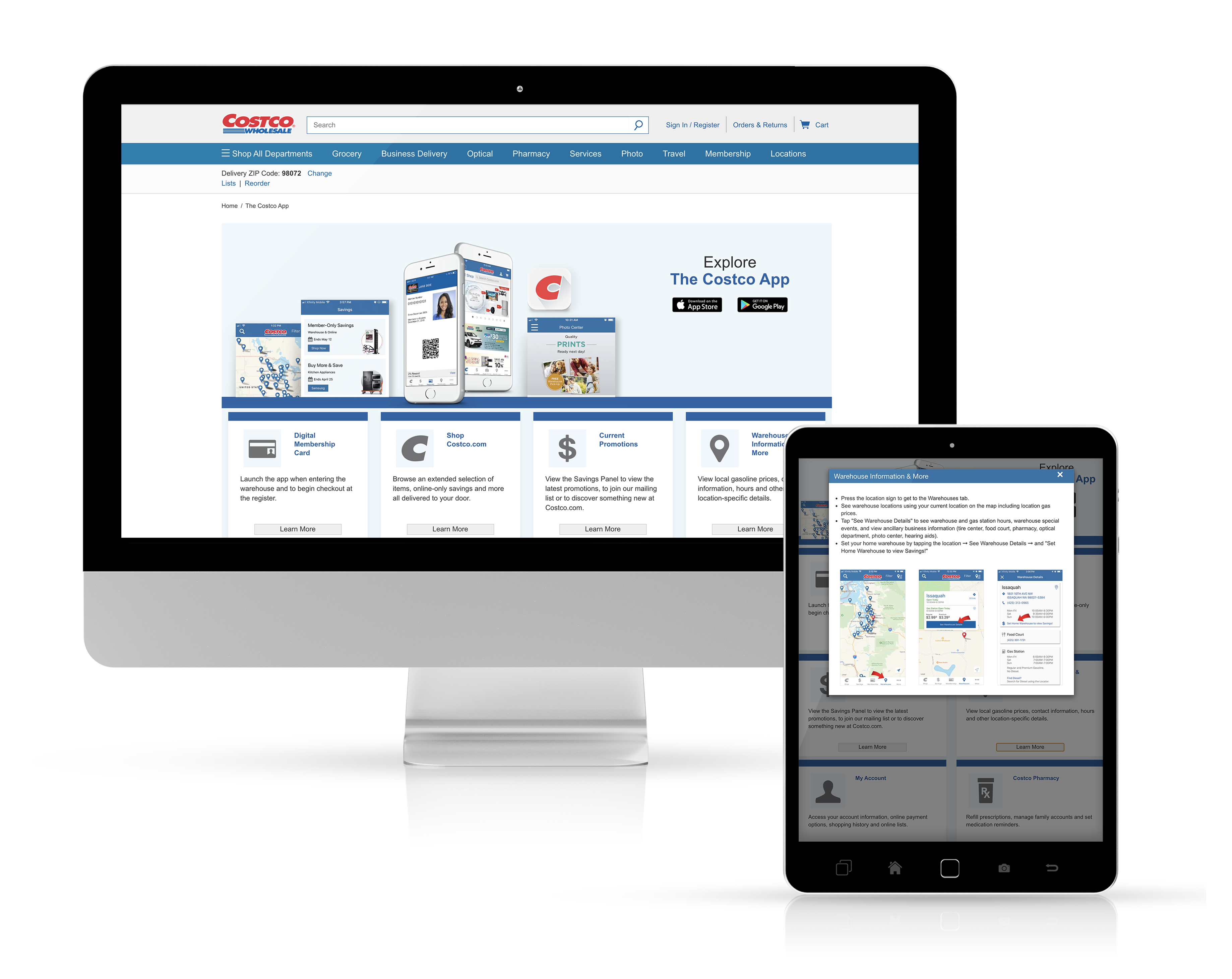 This webpage was created for Costco.com. It was built to educate consumers and increasing awareness of the Costco App. When Costco added the Digital Membership Card to the App they experienced a large spike in App use. This page was created to support customers to use more effectively the different App functions.