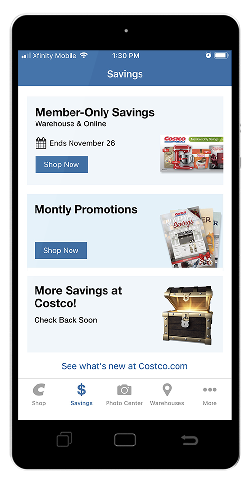 As the lead designer for the Costco App for both USA and Puerto Rico I was responsible for the Savings Panel App content and design.